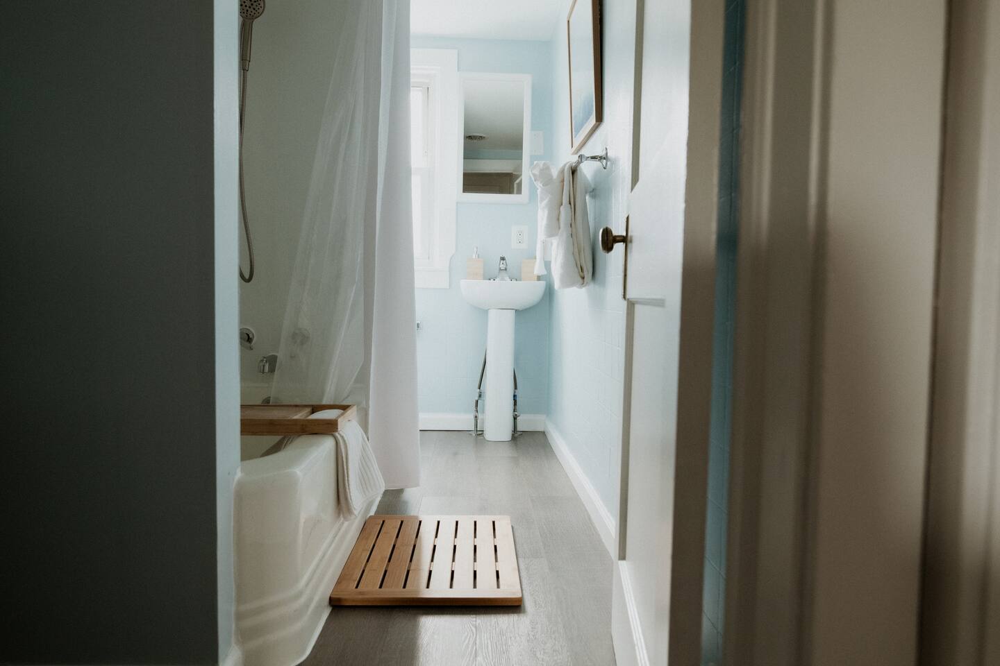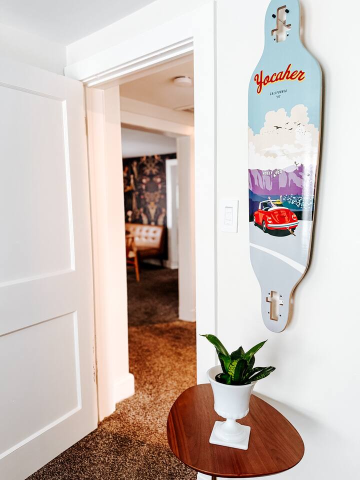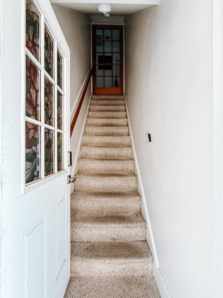 STAIRS The apartment is on the 2nd floor and you need to climb a narrow staircase (15 steps) to enter. CEILINGS The ceilings in the apartment are low (7ft) and a very tall person would likely not be comfortable. NOISE We are in a quiet residential neighborhood. Please be respectful of our neighbors and downstairs tenant when inside and sitting on the porch. You can sometimes hear noise from the house below (including a TV). We also frequently have emergency services driving by, so expect to hear sirens at all hours. The white noise machine provided will help to dampen unwanted sounds when sleeping. CHILDPROOFING We do not have any childproofing in the house and allow a max of 2 people (including children over 12 months). We allow infants under 12 months to stay but do not have a pack and play or bed for children. QUIET HOURS 10pm - 7am SIRI We have an Apple home pod in the office which allows you to control the lights and temp with Siri. You can unplug it if you prefer not to have Siri. The Ecobee also has a Siri function we can disable upon request. INSECTS There are very occasional spiders or bugs that enter the home, especially if the door is left open. We have an insect zapper inside. We will not give refunds or cancel for presence of insects. LIVE PLANTS We have live plants in the house. CHECK-IN/CHECKOUT We do not approve early check-ins or check outs until the day of. If you’d like to check-in as early as you’d like or as late, we offer a half-day option. Ask us about it! There will be a half-day fee required that will be requested through the Resolution Center. Rental Agreement Requirement To ensure a smooth, safe, and seamless stay for all, we require a short rental agreement to be signed within 24 hours of booking. The agreement is quick and easy to complete online and simply confirms the details of your reservation, our house rules, and safety guidelines. Your booking will be considered official once the agreement is signed.