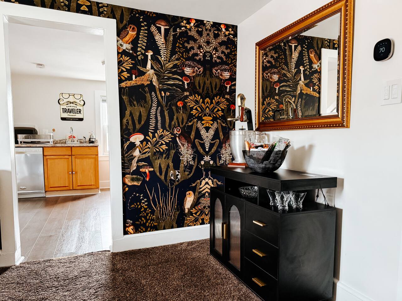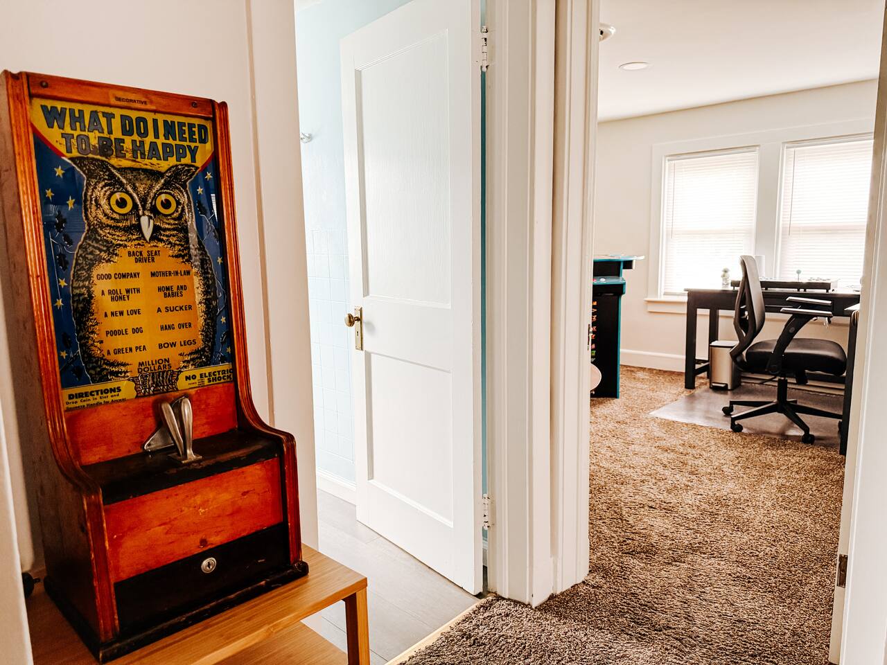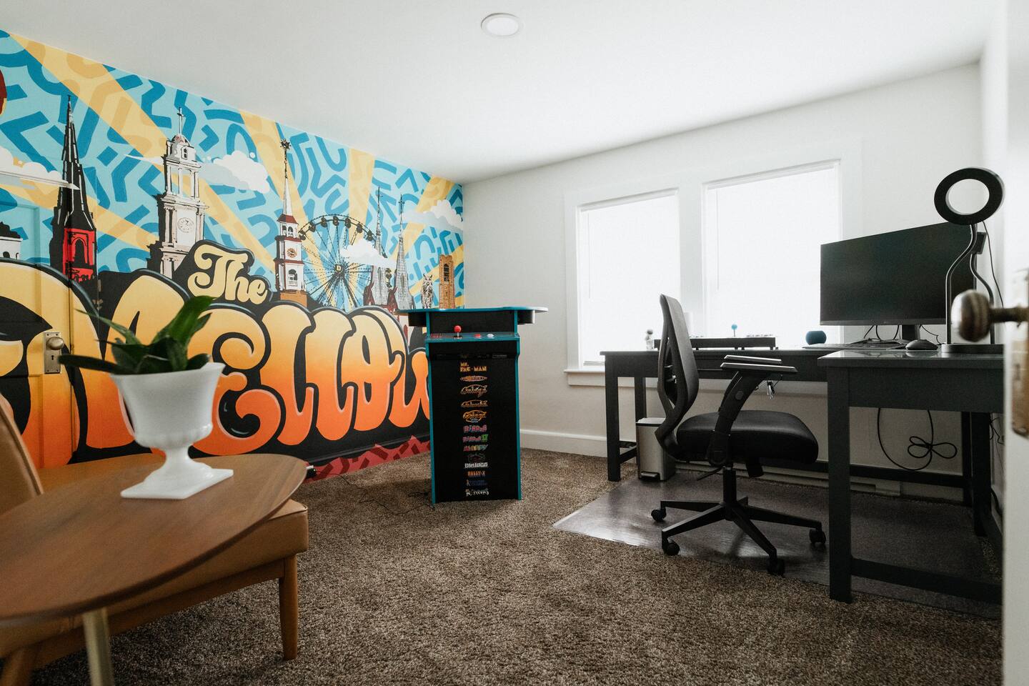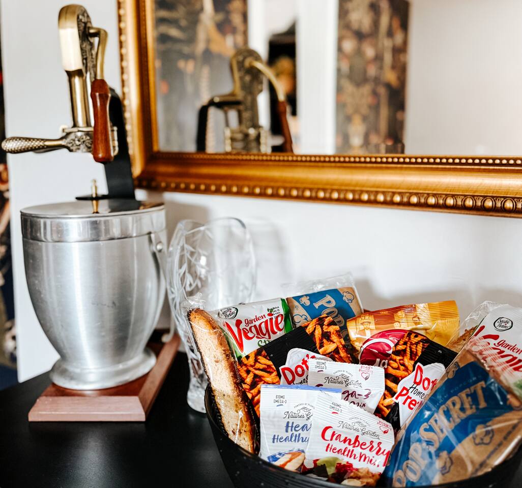 5 ⭐️ communication! Easy checkout! To make your stay as smooth as possible, we’ll send you a quick online rental agreement to review and sign after booking. This short form confirms your reservation details, house rules, and safety guidelines — and must be signed within 24 hours to make your booking official. Every booking includes a small Damage Waiver fee, which covers up to $250 in accidental damage (think a broken glass, a spill on the rug, or a dented pan). This way, you don’t have to worry about life’s little slip-ups. Whether you’re here to power through a productive workweek with lightning-fast fiber internet or to slow down and savor a cozy weekend together, The Mellow on Motter was designed to make you feel instantly at home. ARRIVAL Enter via a private porch on the right side of the house. Three stairs lead to the porch and a narrow, steep staircase once inside. Walk up 15 steps to the bright, airy space with modern appliances, thoughtful touches, and lighting automation to set the mood day or night. BEDROOM • Guests rave about our comfortable bed! • Plush king bed with soft sheets • Room-darkening blinds for uninterrupted rest • 43" TV with FREE streaming • Clothing storage • Iron/Steamer • Phone chargers • White-noise machine • Flameless candles • Siri-controlled dimmable lights for work or wind-down KITCHEN A fully stocked space for easy weekday meals or indulgent weekend breakfasts. • Modern stainless steel appliances • Philips automatic coffee machine • French press & K-cups • Local roasted coffee • Tea kettle • Samsung range/oven with air fryer • Calphalon non-stick pots & pans • Sharp knives • Hand mixer/blender • Basic spices, salt, pepper, and oil • Free coffee, tea, and light snacks DINING ROOM Bright and airy dining with a view — perfect for a quick laptop session or a candlelit dinner. • Bar tools & cocktail glasses • Wine glasses & champagne bucket • Sound system – vinyl & Bluetooth • Siri-controlled dimmable lights • Second workspace option • Flameless candles LIVING ROOM A sunny, cozy retreat for post-work relaxation or a lazy weekend afternoon. • Comfy Poly & Bark leather couch • 55" TV with Free Netflix, Hulu, Disney+ • Games & books • Electric fireplace • Yoga mats • Siri-controlled dimmable lights OFFICE Your weekday home base, complete with a little weekend fun. • Large sit/stand desk • Monitor, keyboard & mouse • Small seating area • Arcade Cabinet (Ms. Pac-Man, Galaga, Dig Dug & more) • Siri-controlled dimmable lights • Serene view • Custom mural - you’ve got to see LAUNDRY Pop your clothes into our bespoke all-in-one washer/dryer and come back to washed AND dried clothes — no machine-switching needed. PORCH A little slice of Frederick sky. • Private cozy porch with seating • Cooler table • String lights for evening charm • Afternoon sun (west-facing) — perfect for coffee or a glass of wine THE VIBE Whether it’s your quiet weekday headquarters or your romantic weekend hideaway, The Mellow on Motter makes Frederick feel effortless, comfortable, and just a little bit special.